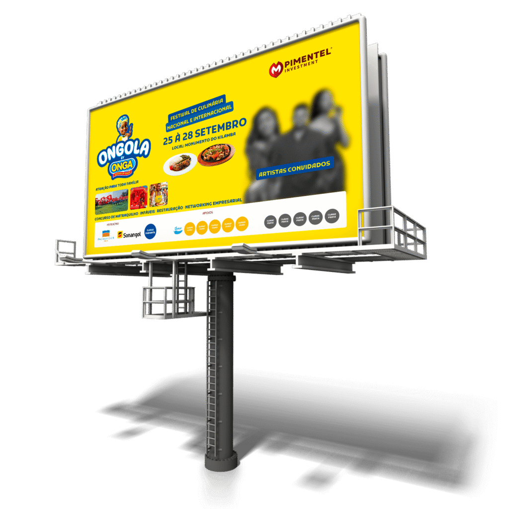 A Festival ONGOLA – Gastronomia, Cultura e Música contará com uma ampla presença publicitária na cidade de Luanda. Reconhecidas pelo seu impacto no mercado de comunicação visual, estas marcas disponibilizarão diversos outdoors estrategicamente posicionados nos principais pontos da cidade, garantindo máxima visibilidade ao evento.